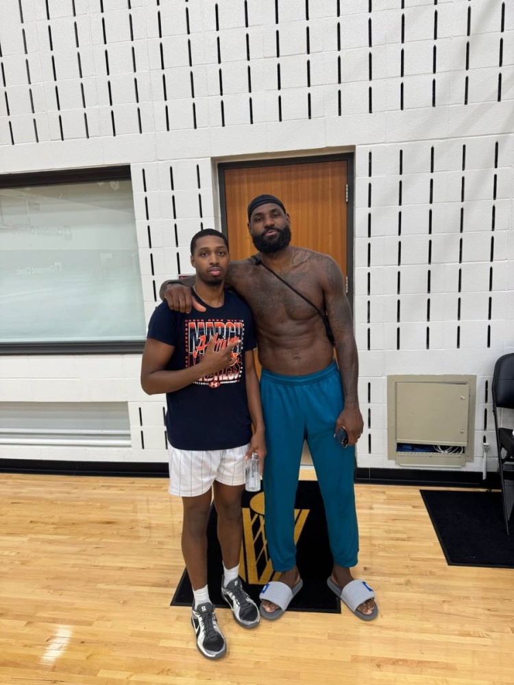 “7月4日前后,网上突然出现一张照片:赤膊的勒布朗在克利夫兰骑士训练馆,和一个显然是他超级粉丝的孩子合影。那孩子叫丹佛-琼斯,看NCAA的话,知道他今年是奥本大学的首发,打了 NCAA 锦标赛,没被选中,现在在骑士打夏季联赛,所以在克利夫兰的训练馆。”