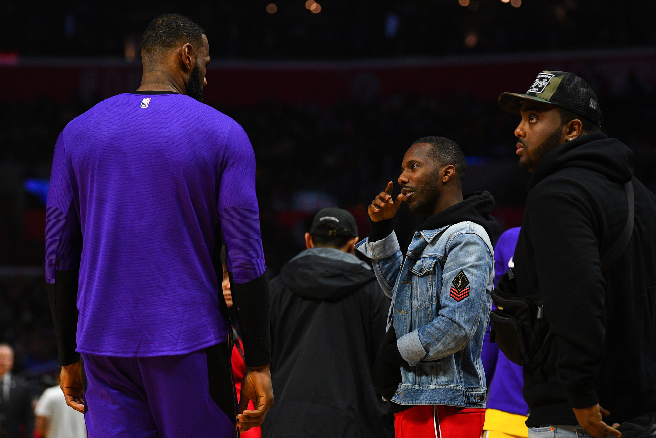 主持人:“你当时在后备箱里卖球衣,而且,嗯,我好像还看过一个视频。是你说的还是谁说的来说。我觉得好像是别人说的,说你和詹姆斯刚开始合作的那几年,你是免费为詹姆斯工作的。我听说过这事。”