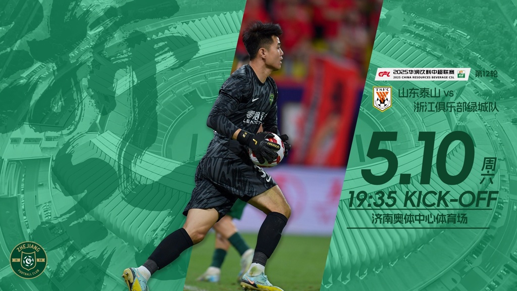 05月10日讯 北京时间今晚19点35分,中超第12轮,山东泰山主场迎战浙江队,赛前双方公布首发阵容。