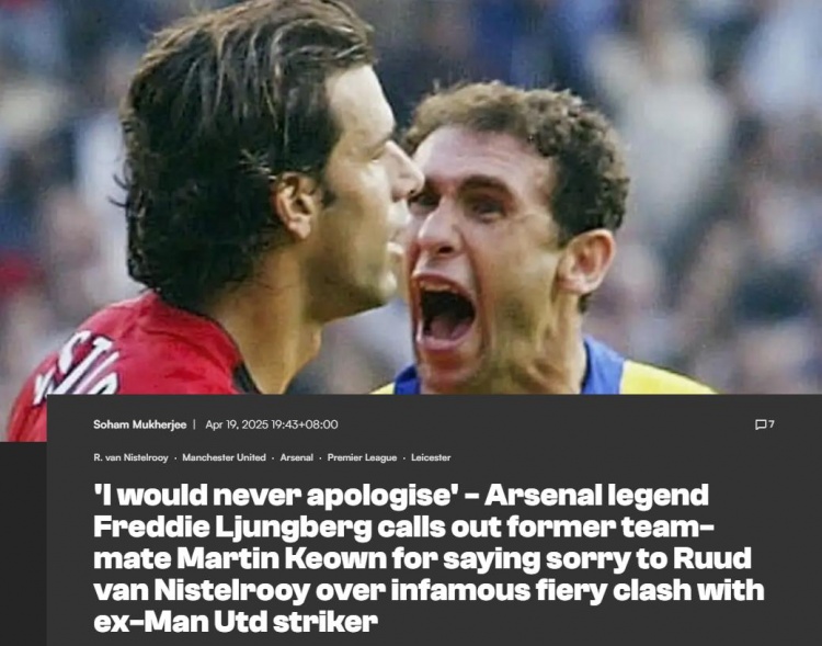 4月19日讯 03-04赛季英超阿森纳客场0-0战平曼联,本场比赛争议场面不断,最后时刻范尼罚丢自己创造的点球,枪手后卫基翁向范尼怼脸输出,这一幕也成为英超历史名场面。