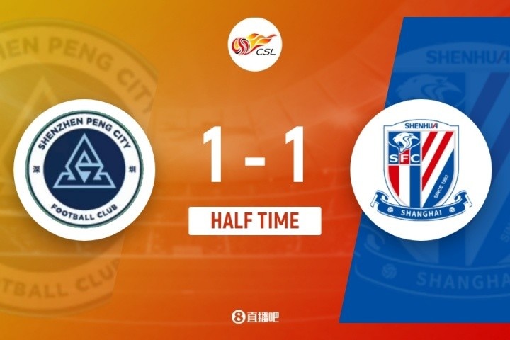 伤停补时3分钟。上半场比赛结束,深圳新鹏城1-1上海申花。