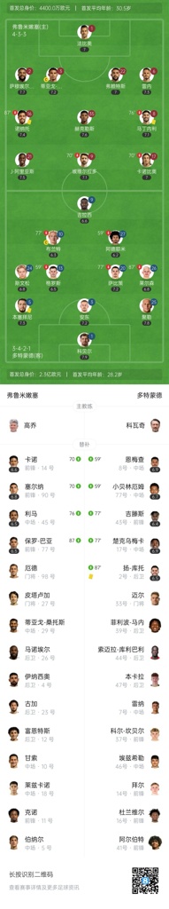 全场比赛结束,弗鲁米嫩塞0-0多特。