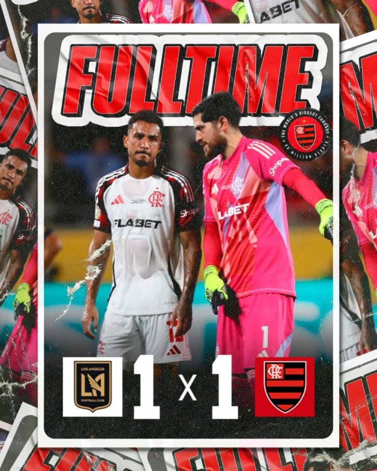 伤停补时4分钟。全场比赛结束,洛杉矶FC1-1弗拉门戈。