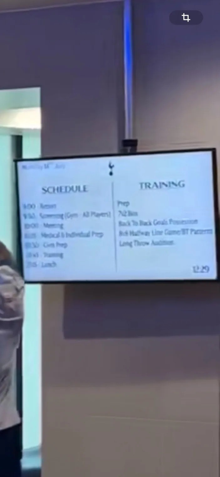 弗兰克正在将布伦特福德时期的定位球理念移植至热刺,其执教团队已招募前阿森纳、曼联定位球教练安德烈亚斯-乔治森,而社交媒体曝光的训练画面更揭示了战术细节,球队边乌多吉在社交媒体上意外曝光当日训练计划,日程表末项赫然标注“长距离界外球”。