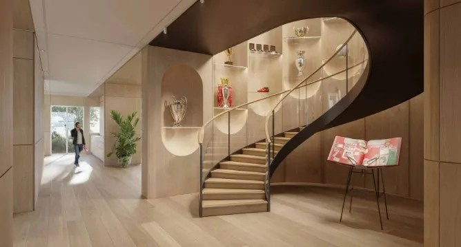 据称财政紧张的曼联通过拉特克利夫2.36亿英镑基建专项注资完成升级,这是拉爵收购曼联27.7%少数股权后所承诺的。二层设有球员休闲区,配备定制理发店,这将是英国首家拥有专业美发沙龙的训练基地,但尚不确定会聘请专属理发师或允许球员自带造型师。